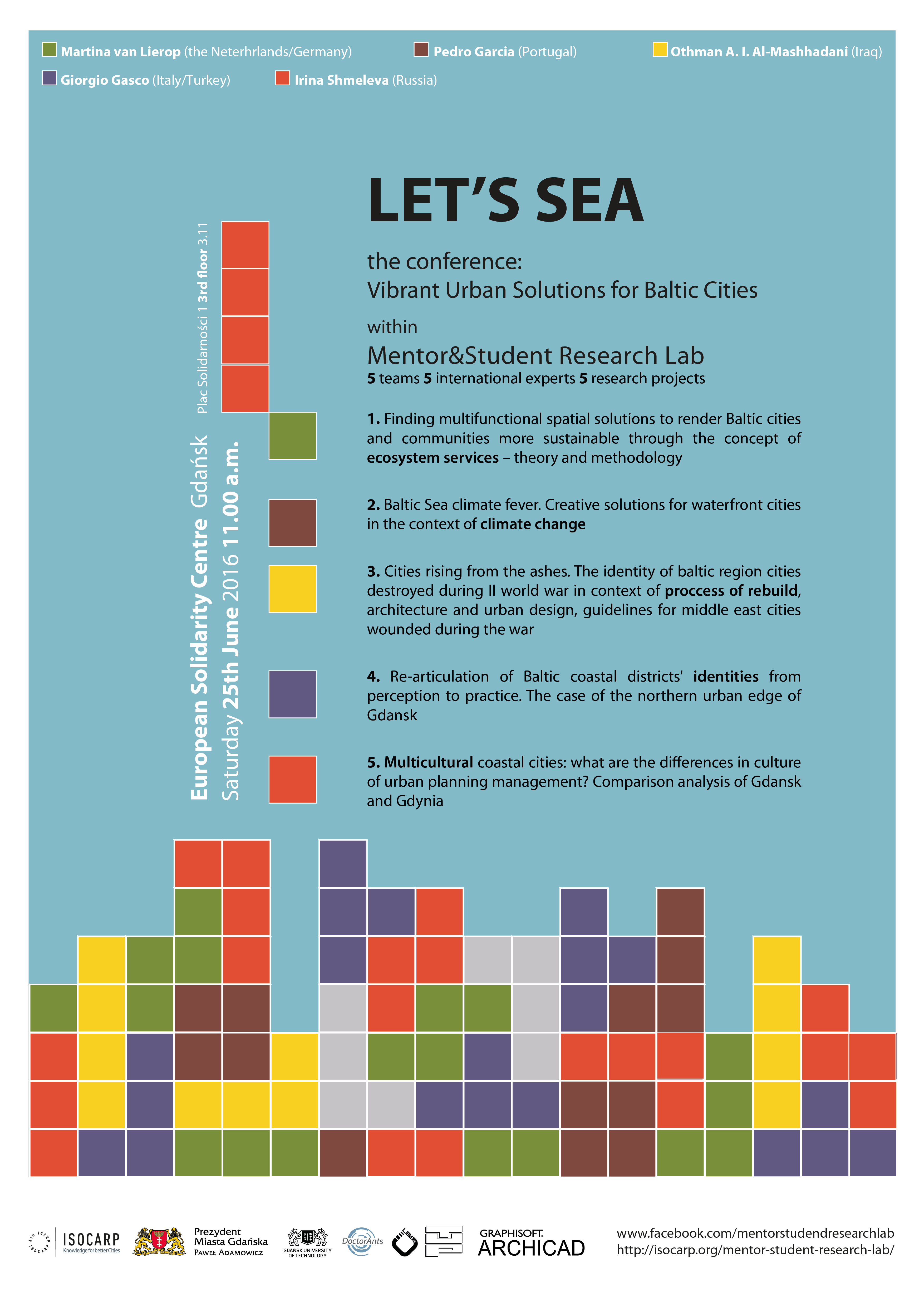 W imieniu zespołu MSRL - pracowników, doktorantów i studentów Wydziału Architektury Politechniki Gdańskiej- serdecznie zapraszamy na Konferencję: Vibrant Urban Solutions for Baltic Cities w ramach Mentor&Student Research Lab, organizowaną przez: ISOCARP (The International Society of City and Regional Planners), Prezydenta Miasta Gdańsk, Wydział Architektury, Politechnika Gdańska. Podczas konferencji 5 Zespołów MSRL razem z 5 zagranicznymi ekspertami: Martina van Lierop (Holandia/Niemcy), Pedro Garcia (Portugalia), Othman A. I. Al-Mashhadani (Irak), Giorgio Gasco (Włochy/Turcja) i Irina Shmeleva (Rosja) zaprezentują 5 projektów badawczych: - Finding multifunctional spatial solutions to render Baltic cities and communities more sustainable through the concept of ecosystem services – theory and methodology. 2. Baltic Sea climate fever. Creative solutions for waterfront cities in the context of climate change. 3. Cities rising from the ashes. The identity of baltic region cities destroyed during II world war in context of proccess of rebuild, architecture and urban design, guidelines for middle east cities wounded during the war. 4. Re-articulation of Baltic coastal districts' identities from perception to practice. The case of the northern urban edge of Gdansk. 5. Multicultural coastal cities: what are the differences in culture of urban planning management? Comparison analysis of Gdansk and Gdynia.