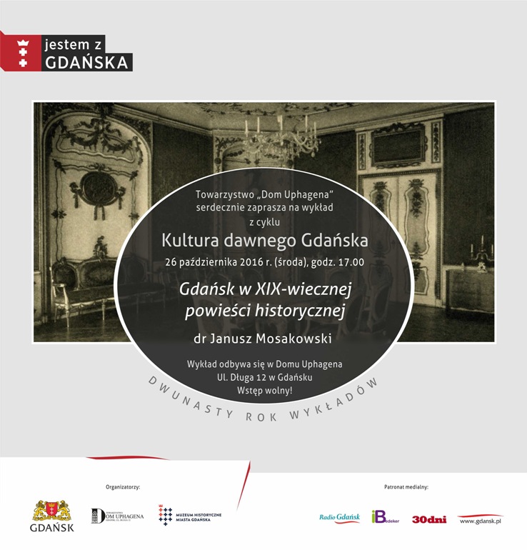 Towarzystwo Dom Uphagena zaprasza na cykl wykładów popularnonaukowych z cyklu Kultura dawnego Gdańska. Wykłady odbywają się w zabytkowym Domu Uphagena, ul. Długa 12 w Gdańsku. Wstęp bezpłatny. Najbliższe wykłady: - 23 listopada 2016 r., środa, godz. 17.00 – mgr Aurelia Bladowska (Studium Doktoranckie Historii, Historii Sztuki i Archeologii Uniwersytetu Gdańskiego), Architektura gdańskich szpitali w XIX i początkach XX w.