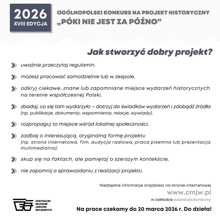 Ogólnopolski konkurs na projekt historyczny pt. "Póki nie jest za późno"