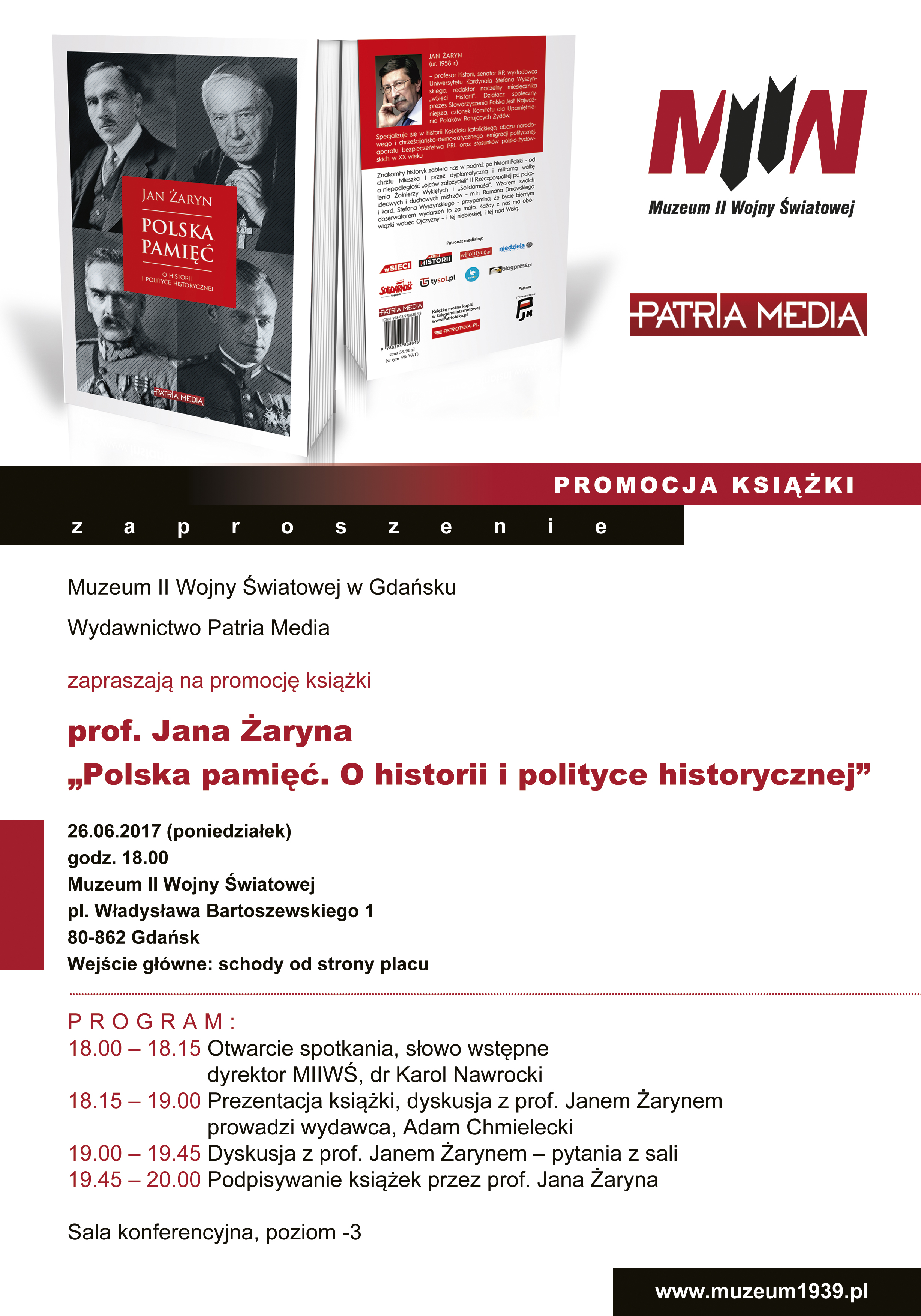 Muzeum II Wojny Światowej zaprasza na promocję książki prof. Jana Żaryna „Polska pamięć. O historii i polityce historycznej”. szczegóły znajdują się w zaproszeniu: zobacz