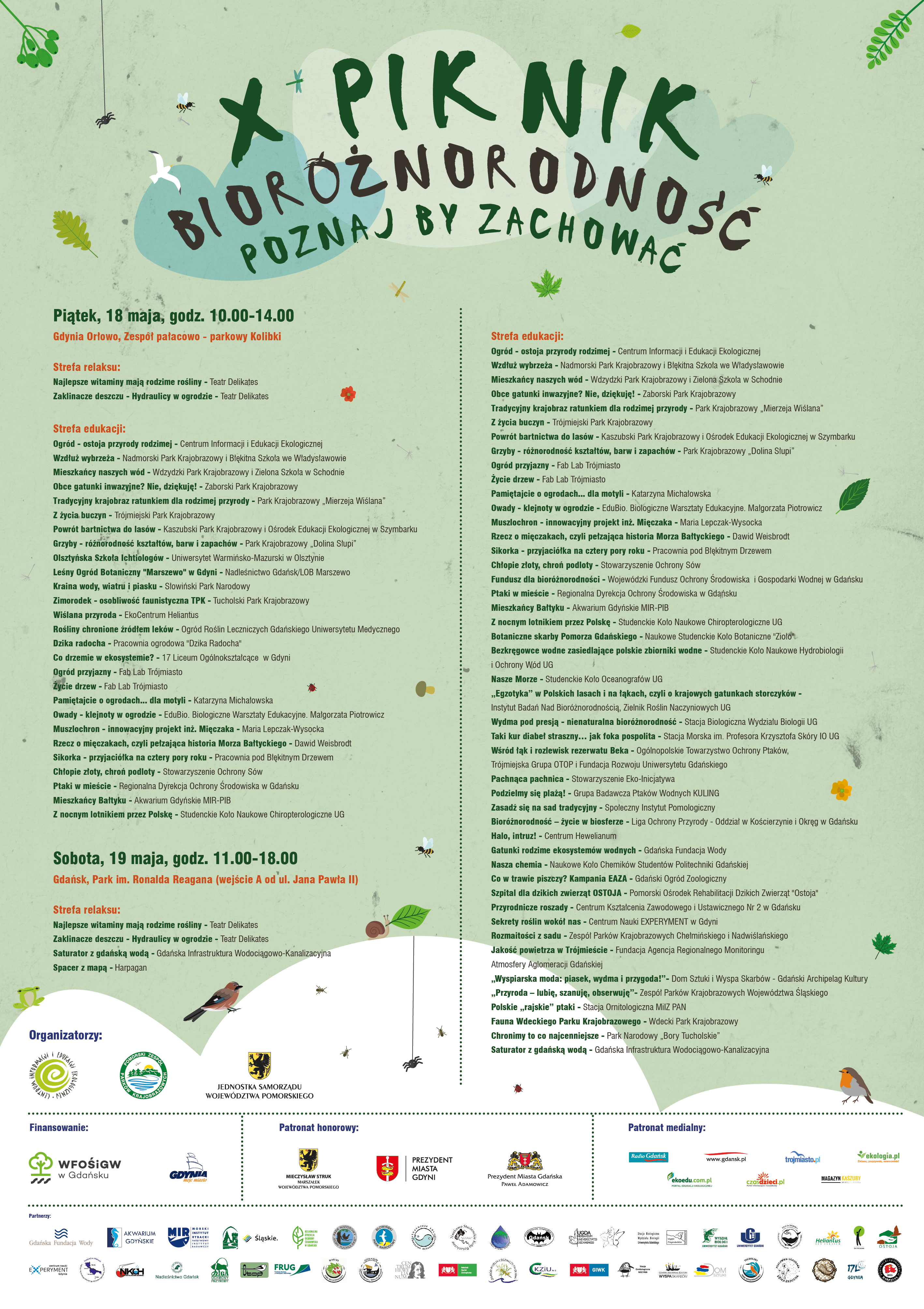 Centrum Informacji i Edukacji Ekologicznej, Pomorski Zespół Parków Krajobrazowych oraz Partnerzy zapraszają na X piknik Bioróżnorodność - poznaj, by zachować! „Cudze chwalicie swego nie znacie”, to utarte już powiedzenie pasuje jak ulał do myśli przewodniej X pikniku, czyli przyrody rodzimej. Mamy tendencję do porównywania - gdzieś morze zawsze jest cieplejsze, kwiaty bardziej okazałe, trawa bardziej zielona, ptaki bardziej kolorowe a owoce smaczniejsze. Chętnie zachwycamy się tym, co na „podwórku u sąsiada”. Modnie jest pić koktajl z nasionami chia, sadzić w ogrodzie astry nowobelgijskie, dodawać do owsianki jagody goji a do obiadu puree z topinamburu. Ale w przyrodzie - jak w życiu - lepsze jest wrogiem dobrego. Czasem warto zatrzymać się w tym całym „próbowaniu”, porównywaniu i docenić to, co jest tu i teraz! Docenić tę różnorodność, która jest tylko nasza. Te gatunki, które w tym unikalnym zestawieniu występują tylko u nas. Zatem, na przekór modzie, w ogrodzie posadź malwy, owsiankę zjedz z siemieniem lnianym, nad rzeką spróbuj wypatrzeć zimorodka a kupując ryby miej na uwadze certyfikaty połowów służące także morświnom. Podczas wakacji zachwycaj się tradycyjnym krajobrazem, zapachem macierzanki i chrup papierówki… Równowaga była tematem przewodnim IX pikniku, przyroda rodzima jest gwarantem i ostoją tego „stanu”, który wbrew pozorom, jest całkiem dynamiczny… PRZYRODA RODZIMA – ODKRYJMY RAZEM JEJ TAJEMNICE! daty i miejsca: piątek, 18 maja, godz. 10.00-14.00, Gdynia Orłowo, Zespół pałacowo - parkowy w Kolibkach sobota, 19 maja, godz. 11.00-18.00, Gdańsk, Park im. R. Reagana (wejście A od ul. Jana Pawła II) plakat: OTWÓRZ program pikniku: ZOBACZ źródło: CIiEE (stan na dzień 15 maja 2018 r.)