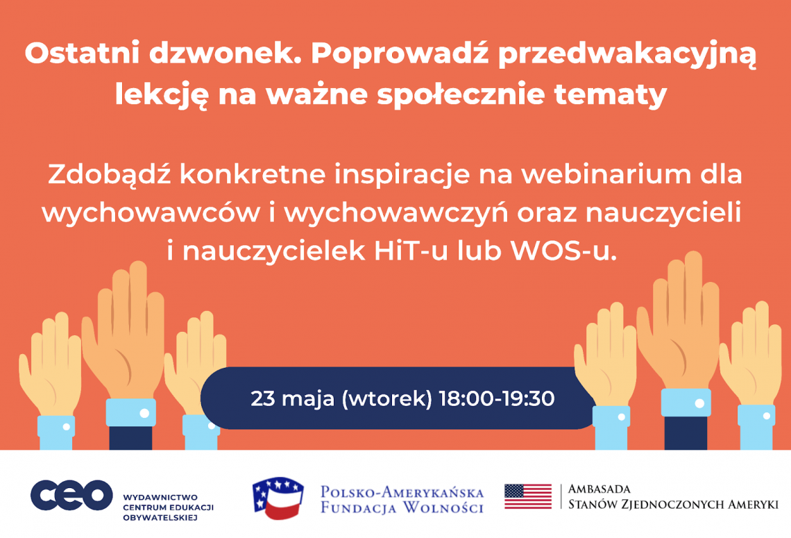 Ambasada USA w Warszawie i Centrum Edukacji Obywatelskiej zapraszają nauczycieli szkół ponadpodstawowych do udziału w cyklu bezpłatnych warsztatów pt. „Młodzi głosują”.