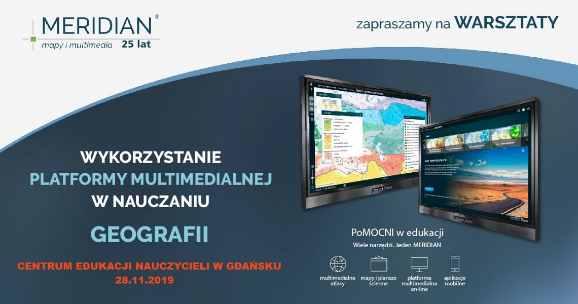 Wspólnie z Meridian, zapraszamy nauczycieli geografii szkół podstawowych i ponadpodstawowych na bezpłatne warsztaty pn. "Geografia - wykorzystanie technologii informacyjno-komunikacyjnych w nowej podstawie programowej".