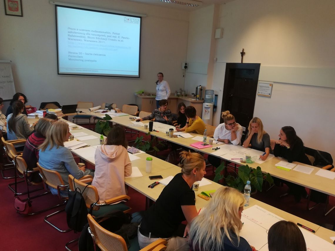 W sobotę 6 października 2018 roku odbyło się szkolenie otwierające sieć nauczycieli pracujących z uczniami z doświadczeniem migracji. Nasza doświadczona w uczeniu języka polskiego jako drugiego ekspertka, Pani Joanna Samp-Szulc, dzieliła się swą wiedzą dotyczącą programów i podręczników dostosowanych do pracy z uczniem z doświadczeniem migracji. Omawialiśmy także problemy, przed którymi staje szkoła, przyjmując w swoje progi uczniów cudzoziemskich. W części praktycznej budowaliśmy scenariusze lekcji języka polskiego jako drugiego. Sylwia Kilanowska-Męczykowska
