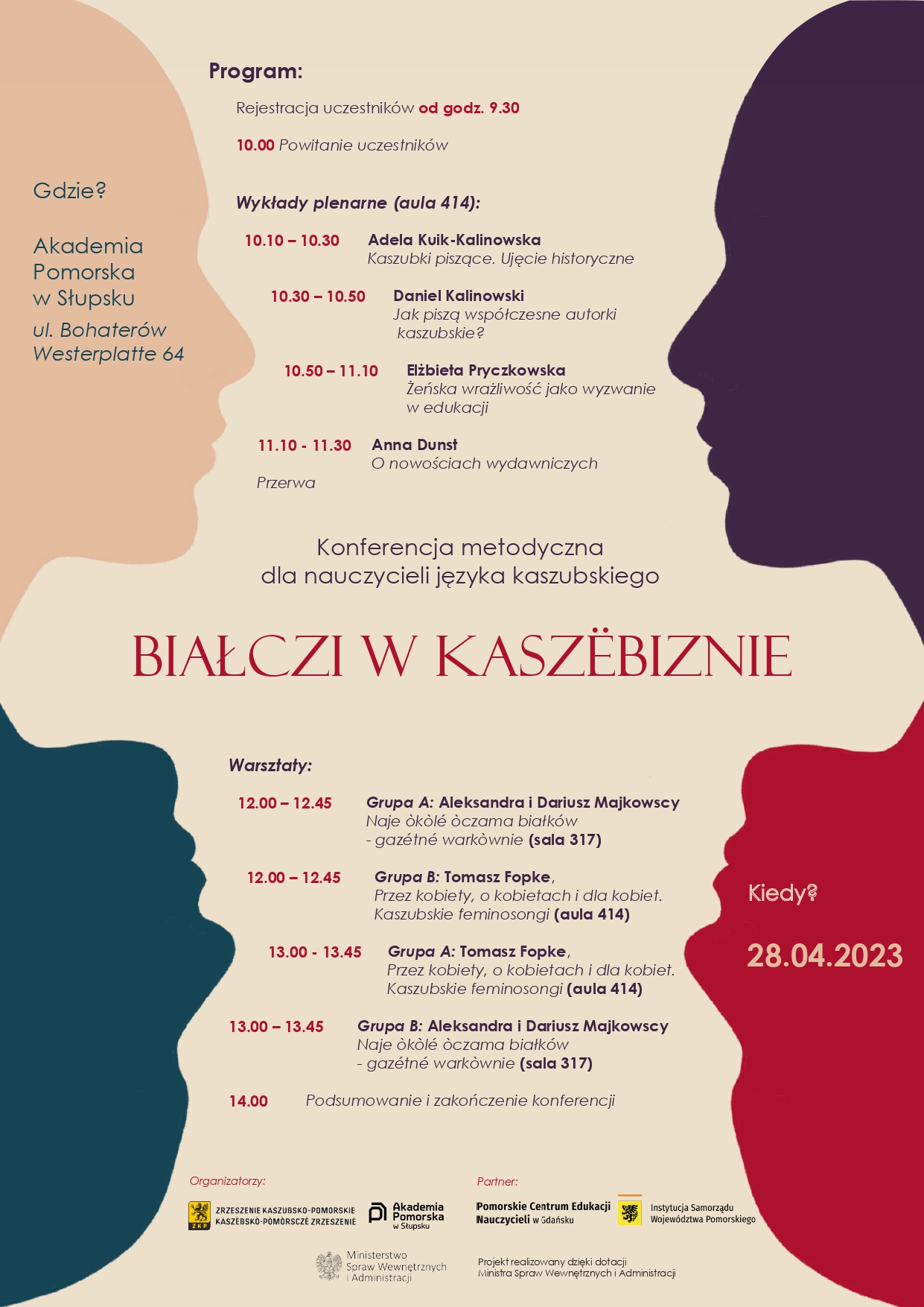W tradycji kaszubskiej dominuje literatura napisana przez mężczyzn. Ale przecież kobiet piszących po kaszubsku jest coraz więcej, a ich głos jest coraz bardziej słyszalny. Wspólnie ze Zrzeszeniem Kaszubsko-Pomorskim i Akademią Pomorską w Słupsku zapraszamy nauczycieli języka kaszubskiego oraz historii i kultury Kaszubów z wszystkich poziomów edukacyjnych na konferencję metodyczną pt. Białczi w kaszëbiznie.