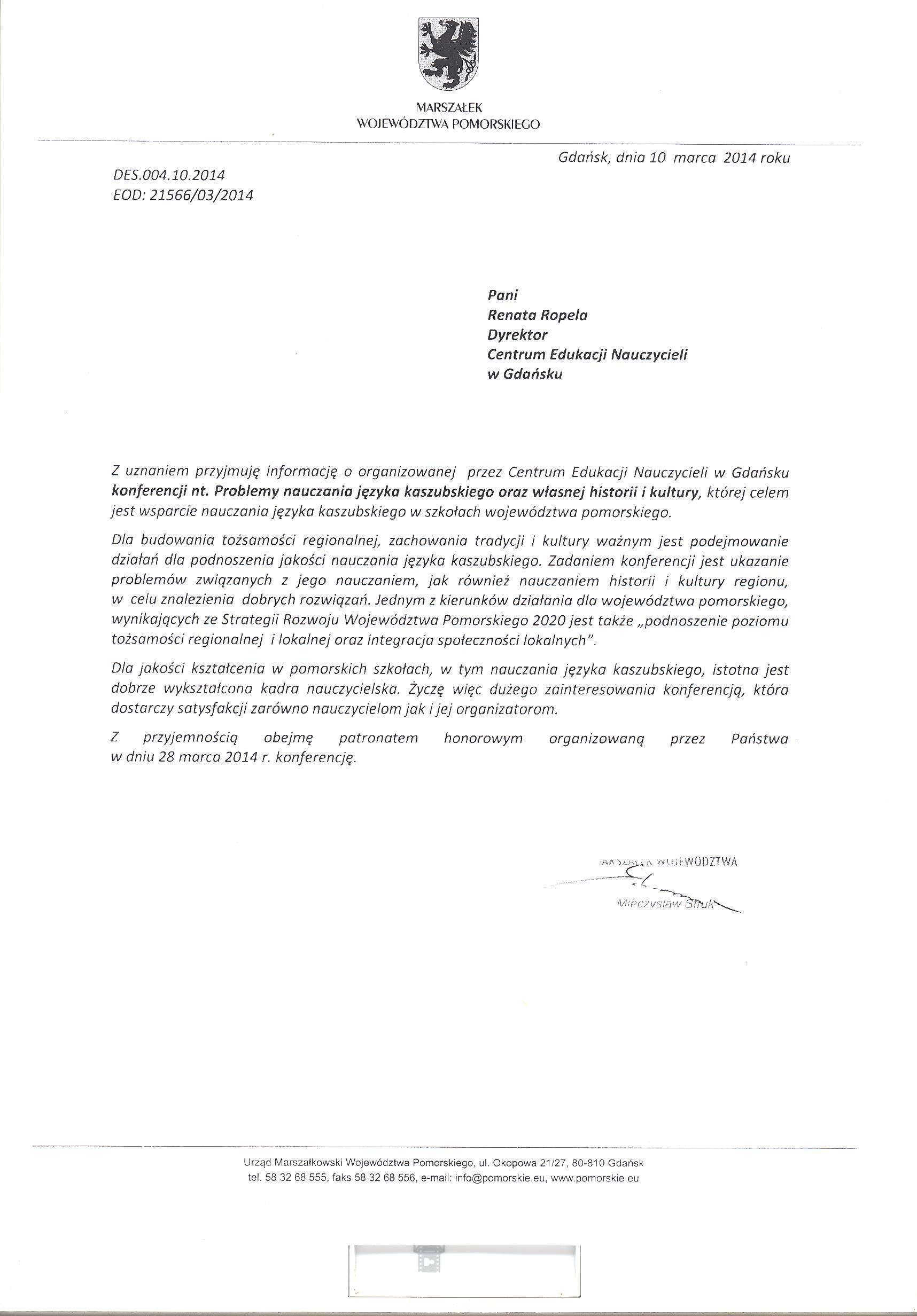 Zapraszamy na konferencję wojewódzką Problemy nauczania języka kaszubskiego oraz własnej historii i kultury, która odbędzie się 28 marca 2014 roku w godzinach od 11.00 do 15.00, w siedzibie organizatora - Centrum Edukacji Nauczycieli w Gdańsku. Wydarzenie adresowane jest do dyrektorów szkół i przedszkoli z nauczaniem języka kaszubskiego, nauczycieli języka kaszubskiego oraz przedmiotu własna historia i kultura, przedstawicieli Kuratorium Oświaty, przedstawicieli stowarzyszeń kaszubskich, rodziców, przedstawicieli mediów.