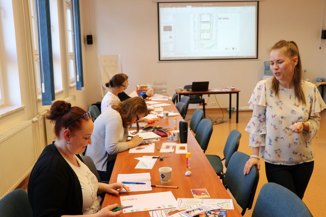 W sobotę 17 listopada 2018 roku poloniści spotkali się na szkoleniu "Kreatywny polonista, czyli jak atrakcyjnie omawiać literackie opisy przyrody". Uczestniczki bawiły się fragmentem "Pana Tadeusza", tworząc teatrzyki 3D. Poezje Kazimierza Przerwy-Tetmajera ubarwialiśmy plastycznymi pracami wykonanymi suchymi pastelami. Sylwia Kilanowska-Męczykowska/Andrzej Cylwik