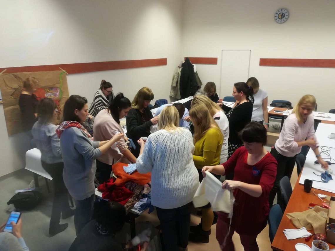 W czwartkowe popołudnie 31 stycznia 2019r., gdy na dworze padał śnieg, w sali 312 było gorąco. Zgromadzone na warsztatach Panie wybierały kolorowe tkaniny, barwne nici, guziczki, paciorki i koraliki, aby wyczarować motanki, laleczki dobrych życzeń. Były grube ziarnuszki, żadanice i i malutkie lichomanki. Efekty można podziwiać na zdjęciach. Dziękujemy prowadzącym: Joannie Wawrzonek i Magdalenie Hinz-Wójcickiej. Sylwia Kilanowska-Męczykowska