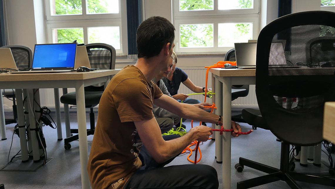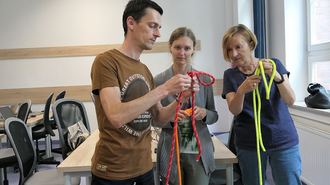 rozwijaliśmy umiejętności związane z wykorzystaniem węzłów żeglarskich, w tym węzła ratowniczego. Dzięki symulatorowi żeglowania poznaliśmy zasady i technikę