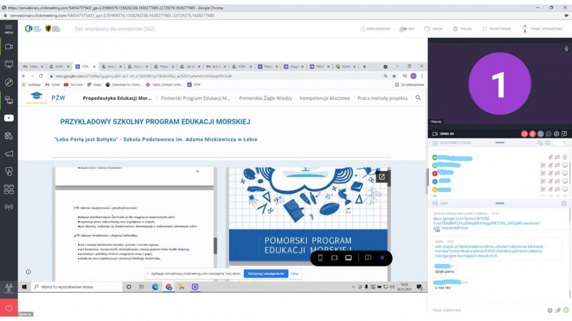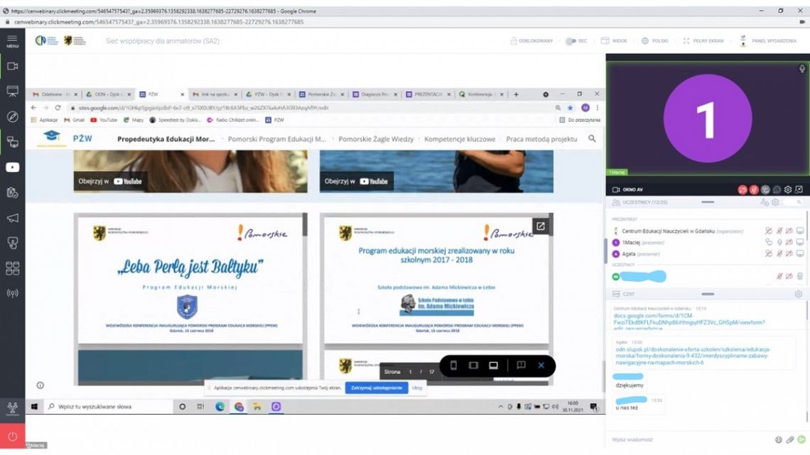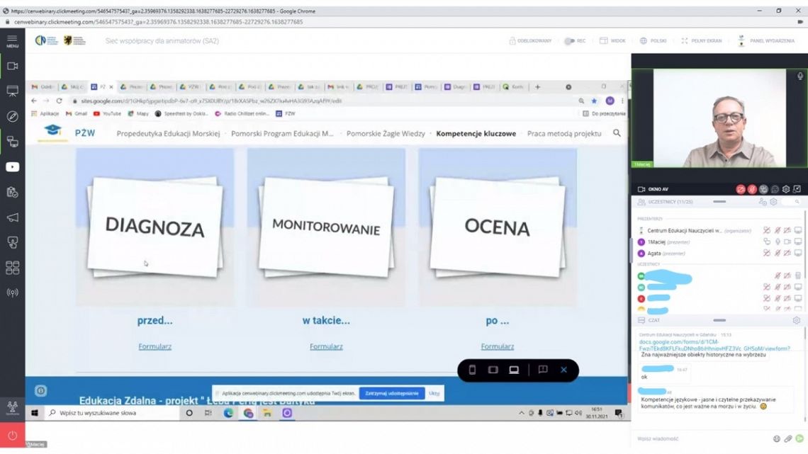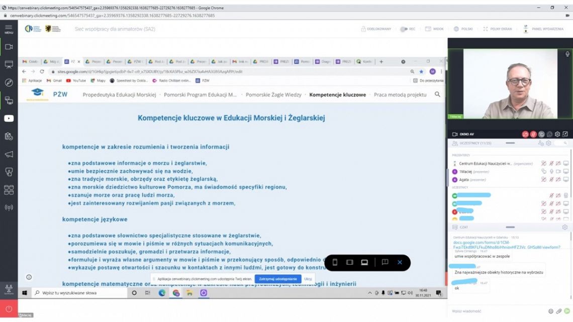 Ekspertem z zakresu edukacji morskiej i żeglarskiej podczas obu spotkań był pan Maciej Barański – lider zmian w zarządzaniu edukacją, właściciel marki Akademii Macieja Barańskiego oraz dyrektor Szkoły Podstawowej im. Adama Mickiewicza w Łebie, który przeprowadził seminarium pt. „Propedeutyka edukacji morskiej – kompetencje kluczowe”. Pan Maciej Barański przybliżył obszar edukacji morskiej, podzielił się swoimi doświadczeniami i wskazał, jak kształtować kompetencje kluczowe wśród uczniów poprzez edukację morską.