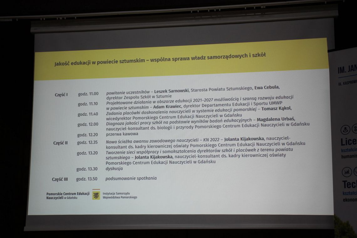 Spotkanie w Sztumie było kolejnym z cyklu powiatowych seminariów „Jakość edukacji w powiecie — wspólna sprawa władz samorządowych i szkół”.