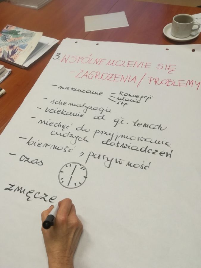Pierwsza część spotkania poświęcona była esejowi i sposobom jego funkcjonowania na lekcjach języka polskiego. W drugiej części skoncentrowaliśmy się na diagnozie potrzeb sieci, identyfikując polonistyczne wyzwania w obliczu realizacji nowej podstawy programowej.
