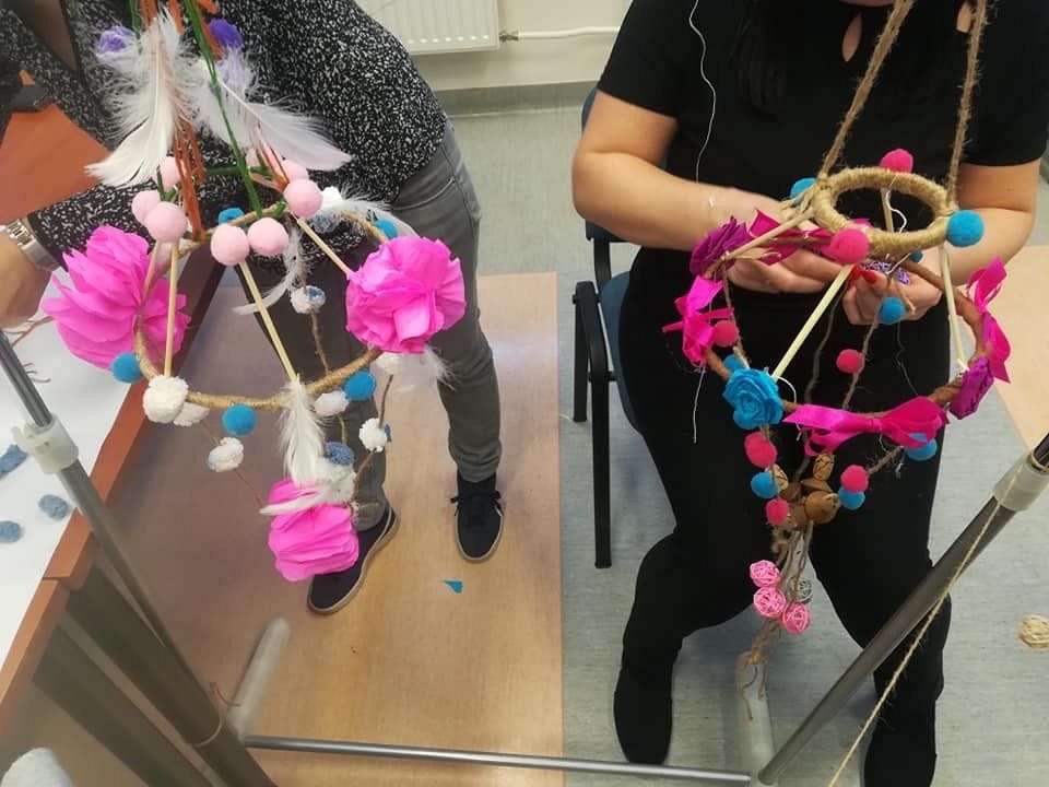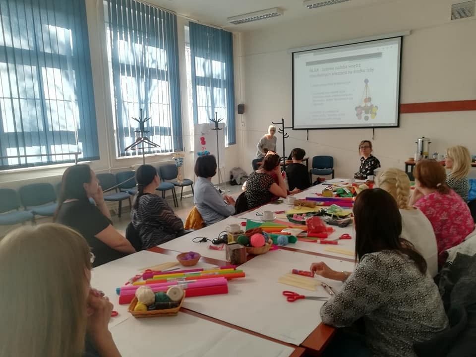 W poniedziałkowe popołudnie 1 kwietnia 2019r. sięgnęliśmy do zasobów naszych tradycji ludowych. Prowadzące szkolenie, arteterapeutki, Magdalena Hinz Wójcicka i Joanna Wawrzonek, wprowadziły uczestniczki w tajemnice ludowego rękodzieła. Tworzyłyśmy ludowe dekoracje w postaci pająków, które kiedyś wiały w każdej wiejskiej chacie. Wspólny stół, słomiane rurki, kwiaty z bibuły i serdeczne rozmowy. Dziękuję Prowadzącym i uczestniczkom za stworzenie sympatycznej atmosfery. Do zobaczenia na kolejnych szkleniach. Sylwia Kilanowska-Męczykowska