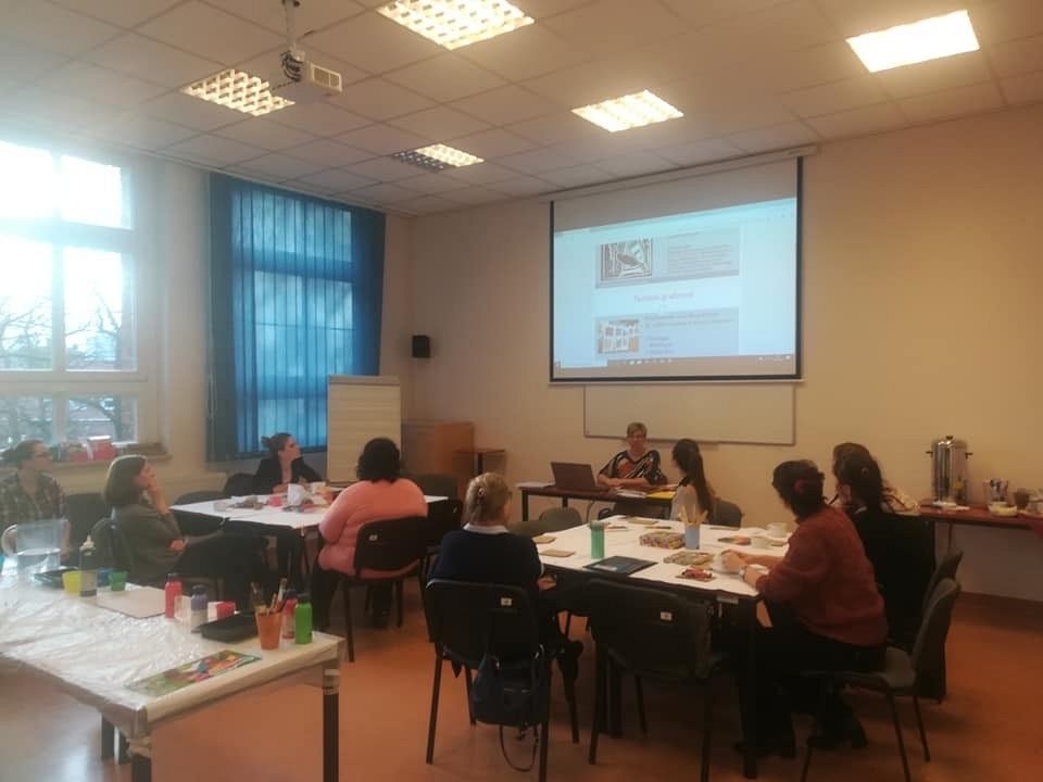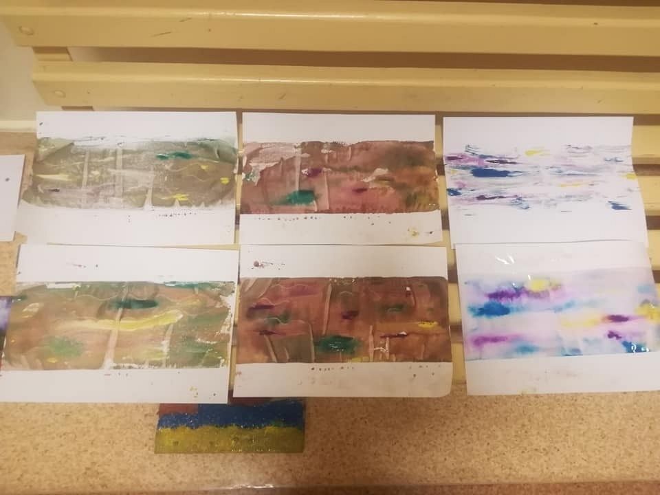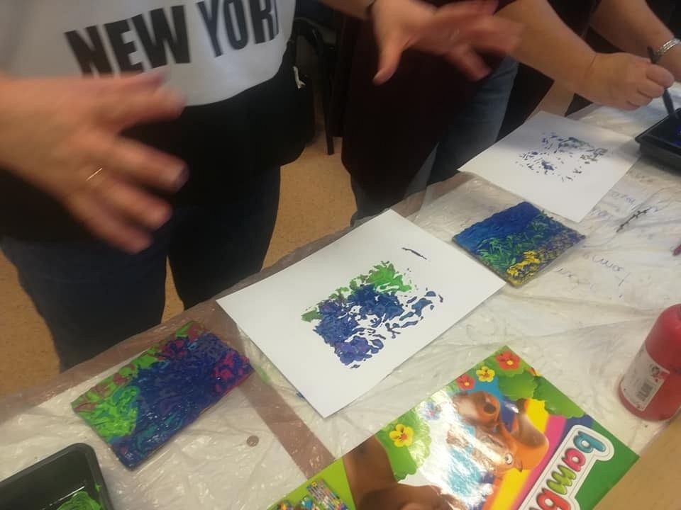 W środowe popołudnie 26 lutego 2020 r. było u nas wiosennie i kolorowo. Malowaliśmy, odbijaliśmy, odciskaliśmy i stemplowaliśmy. Farby, kleje, guziki, liście, folia bąbelkowa, siatki, klocki LEGO… wszystko może inspirować do tworzenia sztuki. Dziękuję Prowadzącej Magdalenie Hinz-Wójcickiej za ciekawe pomysły, a uczestniczkom za energię i uśmiech.