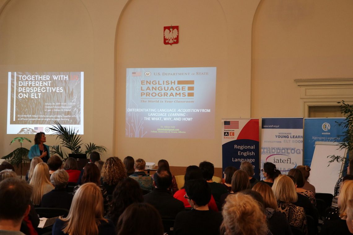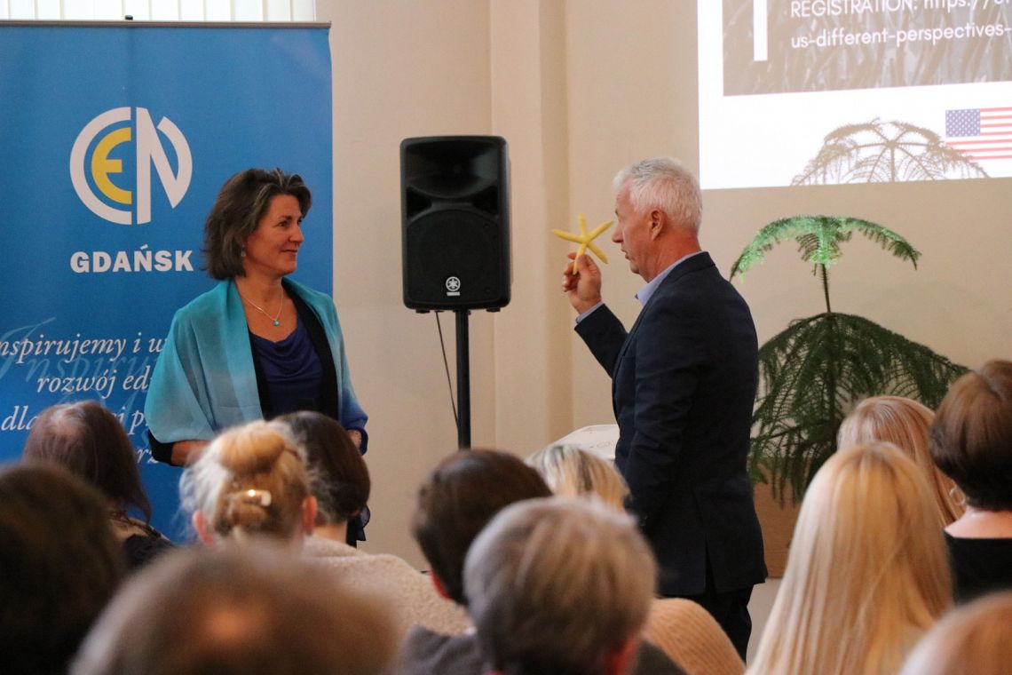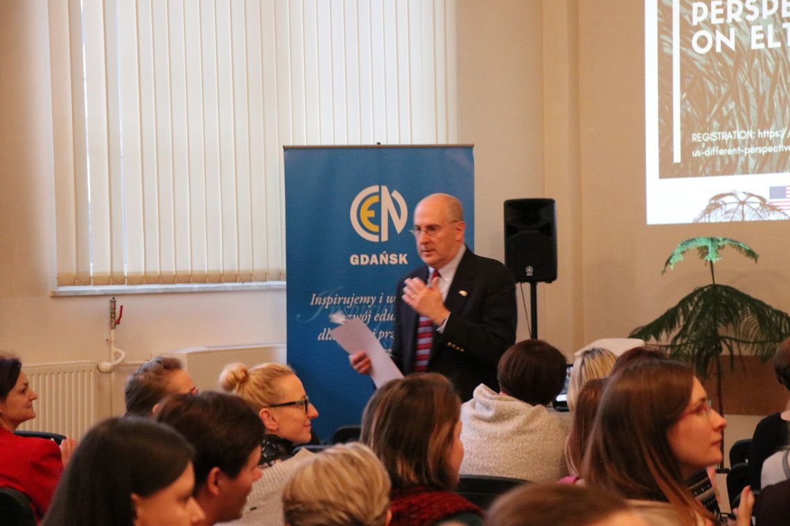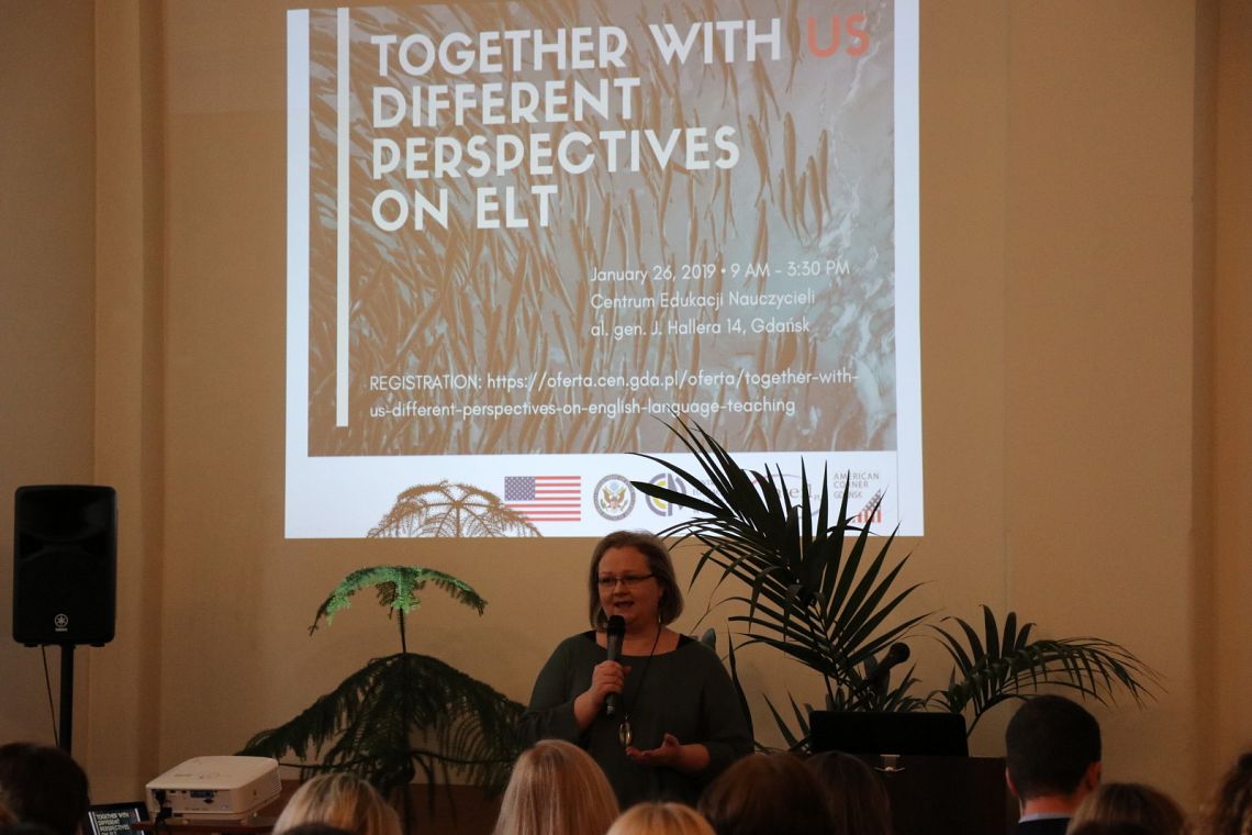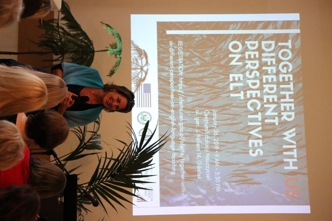 Dzień pełen inspiracji dla pomorskich anglistów 26 stycznia 2019 r. był dniem pełnym inspiracji dla ponad 80 nauczycieli języka angielskiego z Pomorza. Współpraca Departamentu Stanu USA (English Language Programs), IATEFL Poland (Region Gdańsk), Centrum Edukacji Nauczycieli w Gdańsku oraz American Corner pozwoliły nam na zorganizowanie wyjątkowego wydarzenia z udziałem 15 amerykańskich trenerów – seminarium „Together with US. Different perspectives on English Language Teaching”. A day full of inspiration for Pomeranian teachers of EFL 26th January, 2019 was an inspiring day for over 80 English teachers from Pomerania Region. Cooperation between the US Department of State (English Language Programs), IATEFL Poland (Gdańsk Region), Centrum Edukacji Nauczycieli w Gdańsku (In-Service Teachers’ Training Centre) and American Corner allowed us to organize a unique event with the participation of 15 American trainers – a seminar "Together with US. Different perspectives on English Language Teaching". Dzien pelen inspiracji dla pomorskich anglistow