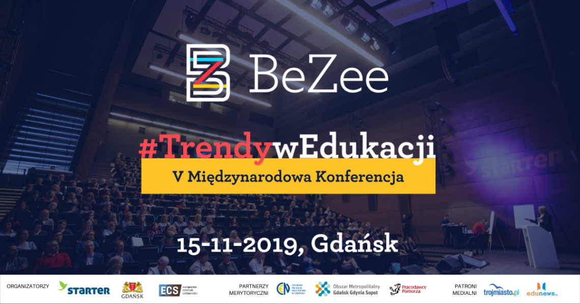 15 listopada w Europejskim Centrum Solidarności już po raz piaty spotkamy się by dyskutować o przyszłości i wyzwaniach w edukacji. Jubileuszowa edycja Międzynarodowej Konferencji BeZee. Trendy w edukacji 2019 poświęcona jest problematyce związanej z kształtowaniem kompetencji przyszłości oraz stymulowaniu odpowiedzialności uczniów i uczennic za własne działania, wybory życiowe w kontekście edukacji, kariery zawodowej czy odpowiedzialności społecznej.
