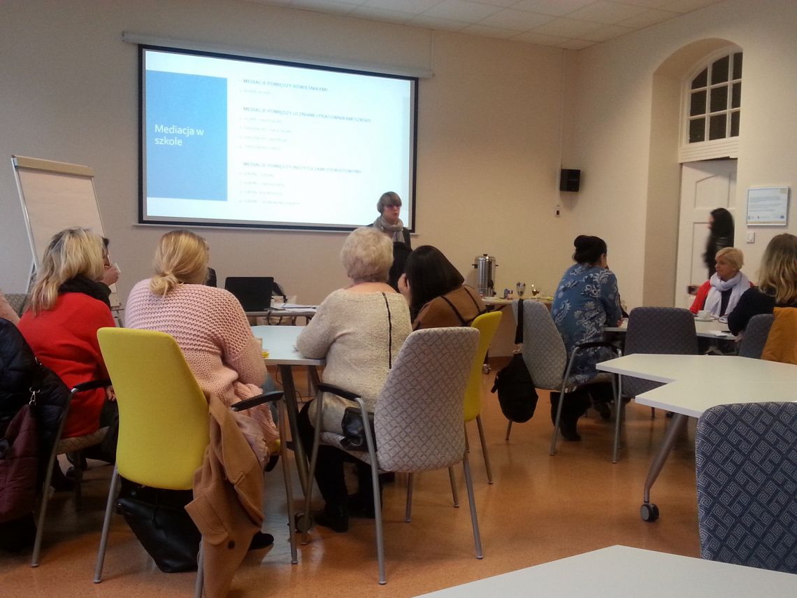 W dniu 3.03.2020 r. odbyło się w CEN kolejne szkolenie dotyczące problematyki mediacji w relacjach między różnymi aktorami życia szkoły. Poruszone zostały aspekty prawne oraz praktyczne aspekty prowadzenia mediacji z zastosowaniem wybranych technik.
