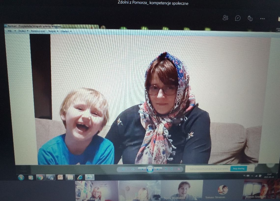 Dalsza część zajęć skupiona jest wokół kilku filmów dokumentalnych, które uczniowie mieli za zadanie obejrzeć wcześniej, a teraz przypominane są ich króciutkie fragmenty. Wszyscy uczestnicy (nauczyciel i uczniowie) rozmawiają przy włączonych kamerkach, co pozwala na utrzymanie żywego, autentycznego kontaktu i dobrego tempa rozmowy. Ponieważ tematem bloku zajęć są „Emocje”, a dzisiejsze zajęcia poświęcone są zagadnieniu otwartości i szczerości wobec otoczenia, niezwykle trafny wydaje mi się wybór pierwszego z omawianych filmów – to pełnometrażowy, fabularyzowany dokument Jacka Bławuta z 1997 roku, zatytułowany Nienormalni. Jest to filmowy zapis dokumentu inscenizowanego, a właściwie eksperymentu pedagogicznego, polegającego na tym, że do domu opieki społecznej, gdzie przebywają dzieci i młodociani upośledzeni umysłowo przybywa nowy wychowawca, muzyk, który pracuje ze swoimi podopiecznymi, próbując ukazać im samym tkwiący w nich potencjał oraz wrażliwość.