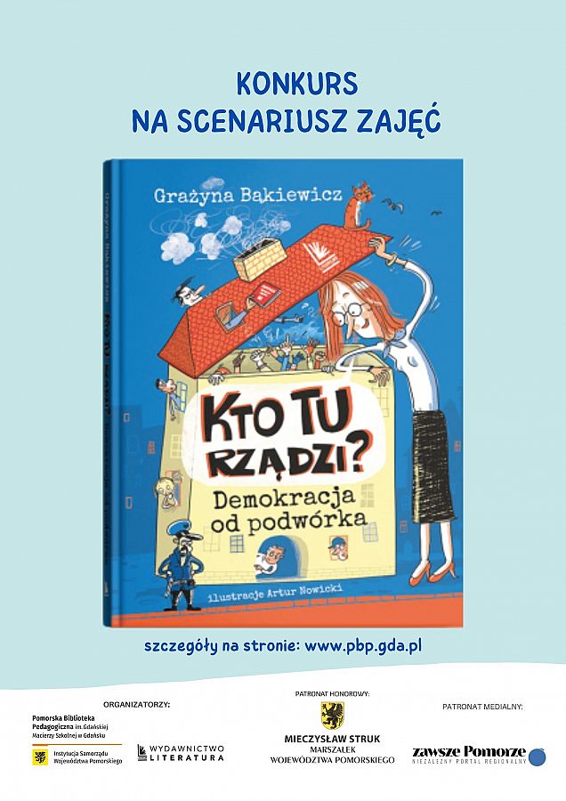Doceniając, jak ważne jest przygotowanie młodych mieszkańców województwa pomorskiego do życia w społeczeństwie obywatelskim, Pomorska Biblioteka Pedagogiczna w Gdańsku we współpracy z Wydawnictwem Literatura ogłosiły konkurs na scenariusz zajęć na motywach książki Grażyny Bąkiewicz „Kto tu rządzi? Demokracja od podwórka”.
