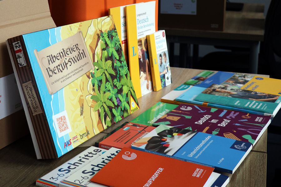Walizki zawodowe zostaly wyposażone przy współpracy z 3 wydawnictwami: LektorKlett, Hueber i Cornelsen. W samym kuferku znajdują sie również publikacje innych wydawnictw.