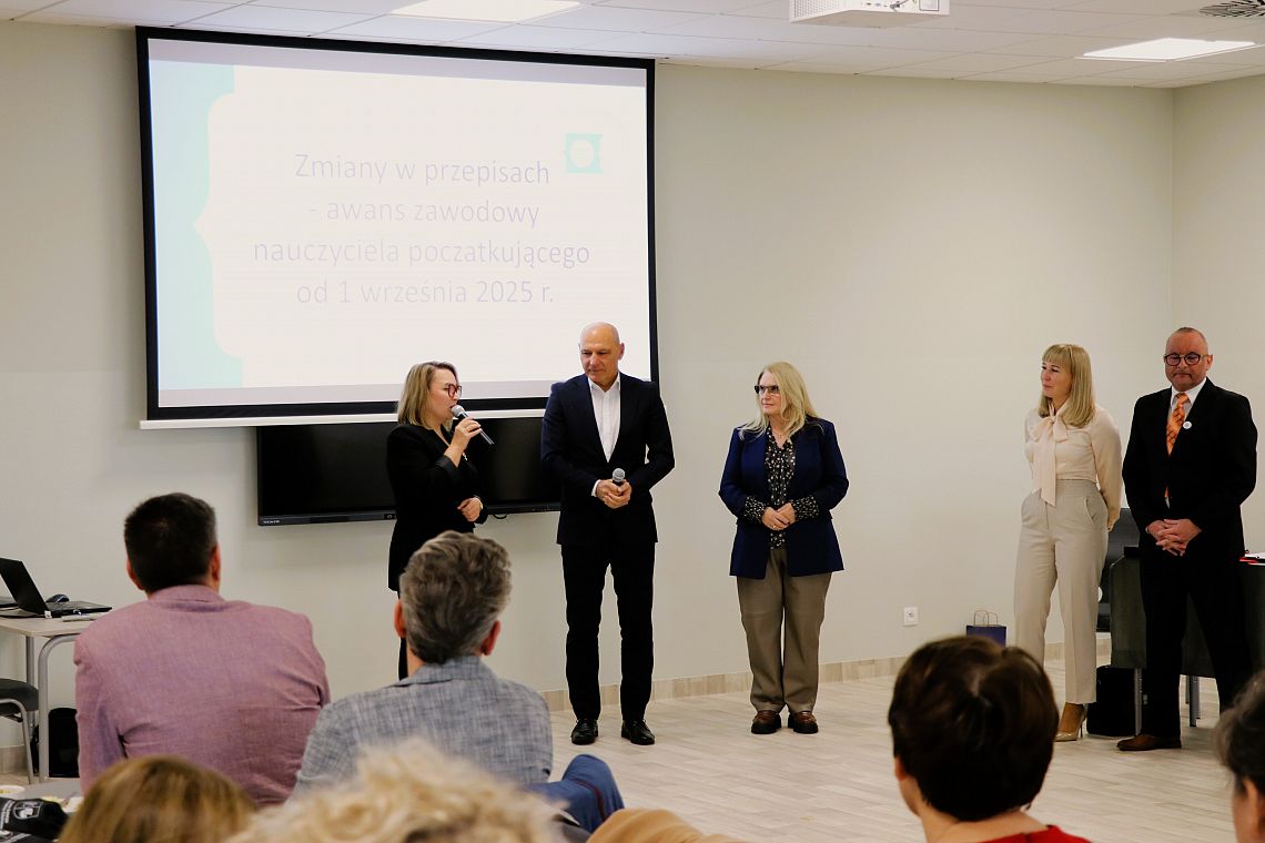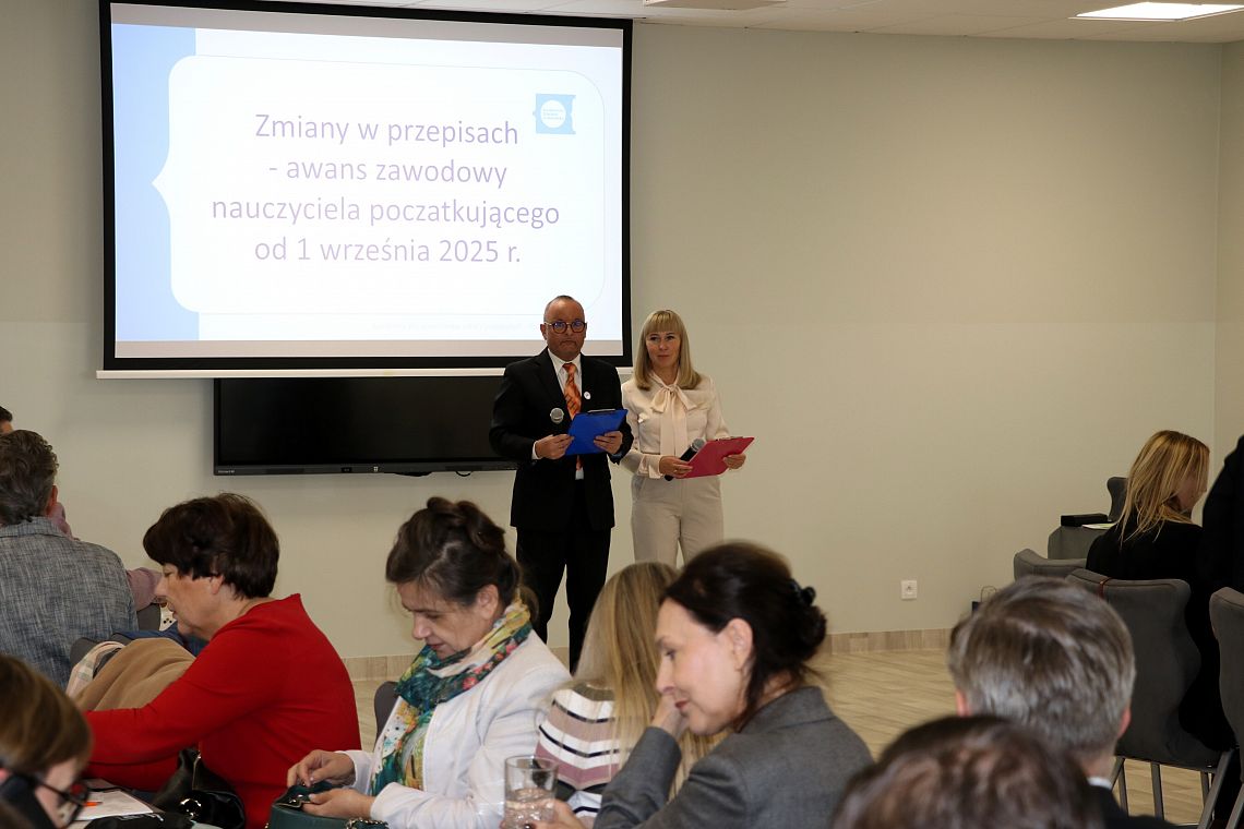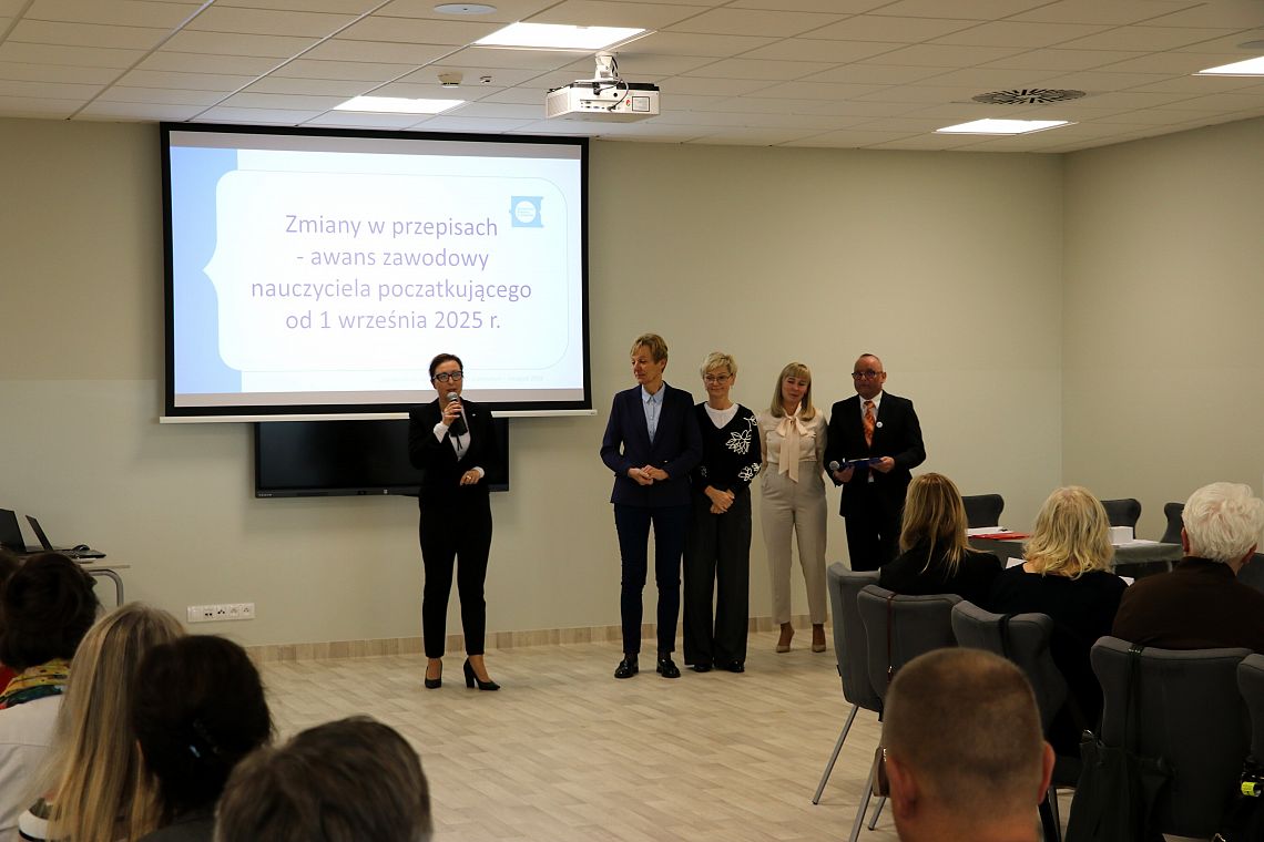 W działania Powiatowej Sieci Nauczycieli Doradców Zawodowych w roku szkolnym 2025/2026 wprowadziła dyrektorów Katarzyna Chojecka (inspektor - koordynator Powiatowej Sieci Nauczycieli Doradców Zawodowych). Po przerwie Potrzeby ucznia autystycznego w szkole – dobre praktyki przedstawili Anna Sak (Prezes Fundacji Nasz Autyzm) oraz Krzysztof Tokarski (psycholog, trener Fundacji Nasz Autyzm). Następnie Radca prawny Kuratorium Oświaty w Gdańsku, Elżbieta Zajączkowska-Matejko omówiła zmiany w Karcie Nauczyciela dotyczące między innymi wynagrodzenia nauczycieli.