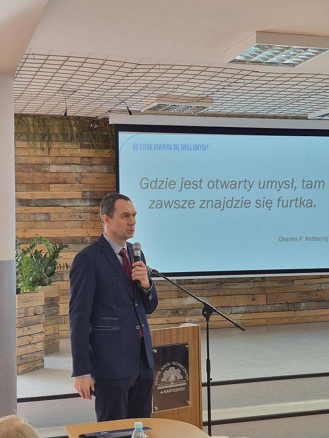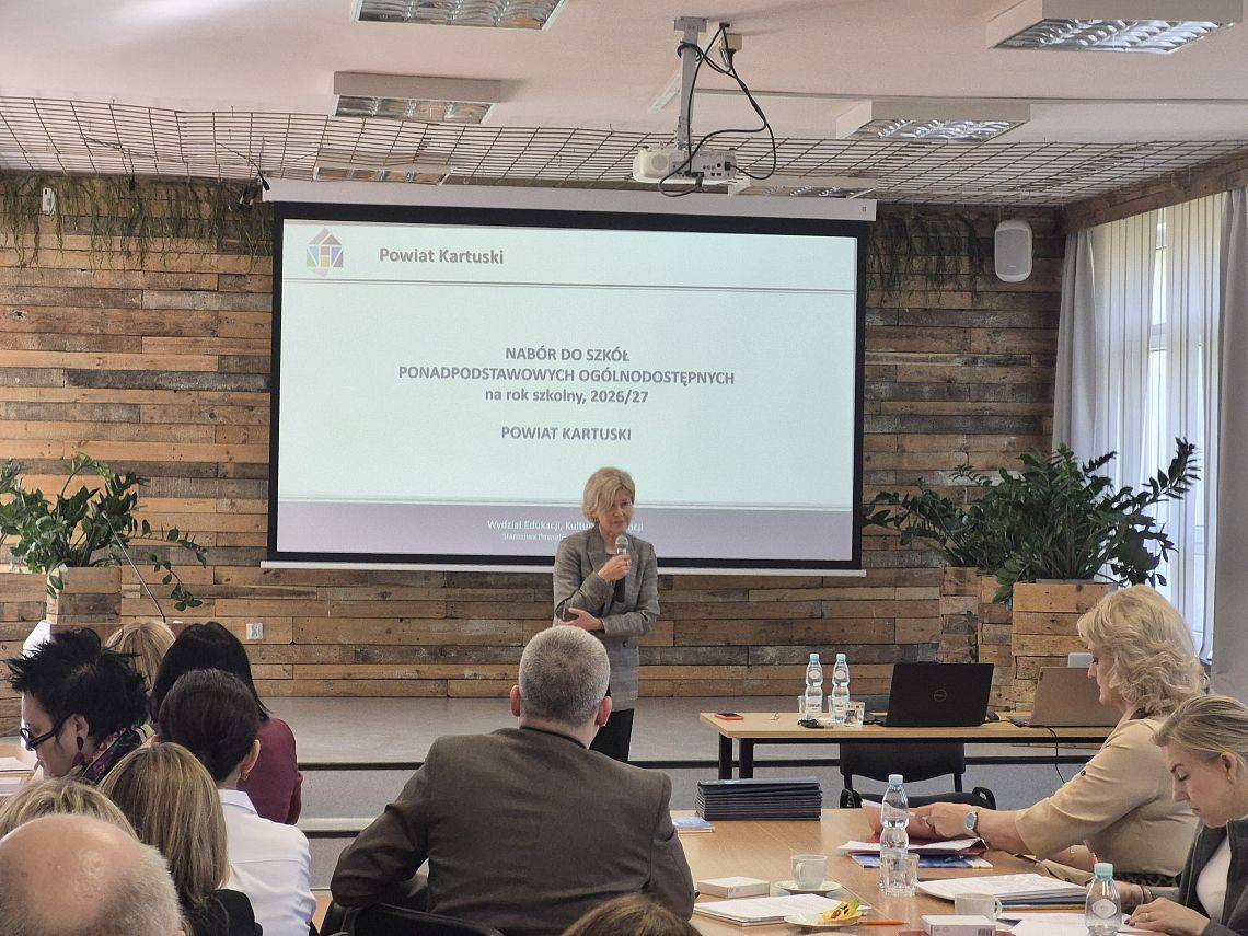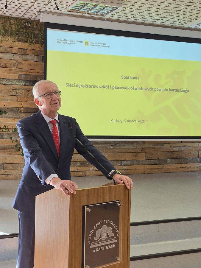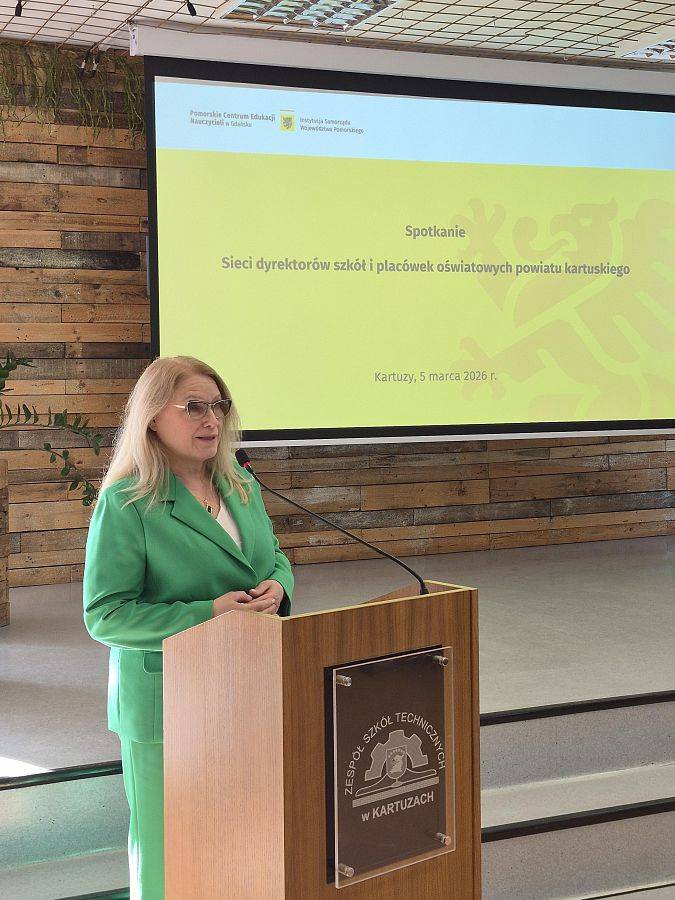 Ożywiona dyskusja, wiele ważnych tematów i wyraźna chęć dalszego działania – tak wyglądało inauguracyjne spotkanie sieci dyrektorów szkół i placówek oświatowych powiatu kartuskiego. Spotkanie odbyło się 5 marca 2026 r. w Zespole Szkół Technicznych w Kartuzach, a uczestniczyło w nim 40 dyrektorów szkół i placówek oświatowych oraz 8 przedstawicieli organów prowadzących. Wydarzenie otworzyli Starosta Kartuski, Bogdan Łapa oraz Ewa Furche, dyrektor Pomorskiego Centrum Edukacji Nauczycieli w Gdańsku. Wprowadzenie do spotkania przedstawiła Joanna Graczyk, koordynator Pomorskiej Sieci Dyrektorów PCEN. Omówiła ona cele funkcjonowania sieci, w tym wspieranie kadry kierowniczej szkół w doskonaleniu kompetencji zarządczych oraz budowaniu współpracy pomiędzy placówkami oświatowymi w regionie.