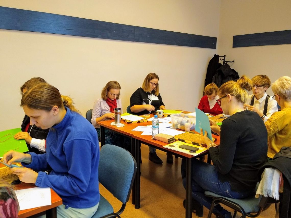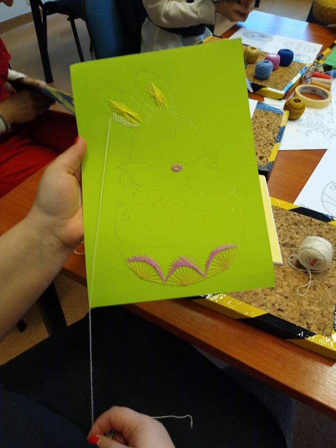 W sobotę 15.02.2020 już od 8.00 nauczyciele matematyki spotkali się po raz kolejny, aby ćwiczyć umiejętność haftowania na kartce. W związku, że następny raz spotykamy się 18 kwietnia, to na tym spotkaniu były hafty wielkanocne.