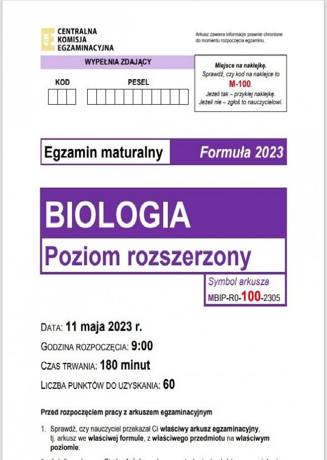 W maju 2023 roku odbył się pierwszy egzamin maturalny z biologii w zmienionej formule. Warto przyjrzeć się arkuszowi oraz temu, w jaki sposób przyznawane były punkty (zasady oceniania rozwiązań zadań). Centralna Komisja Egzaminacyjna udostępniła arkusz na swojej stronie 28 czerwca. Jakie są wyniki tegorocznej matury z biologii dla całej populacji uczniów? Na te informacje musimy jeszcze poczekać. W międzyczasie zachęcam do dokładnego przyjrzenia się zadaniom, arkusz testowy oraz zasady oceniania zamieszczamy w załączeniu.