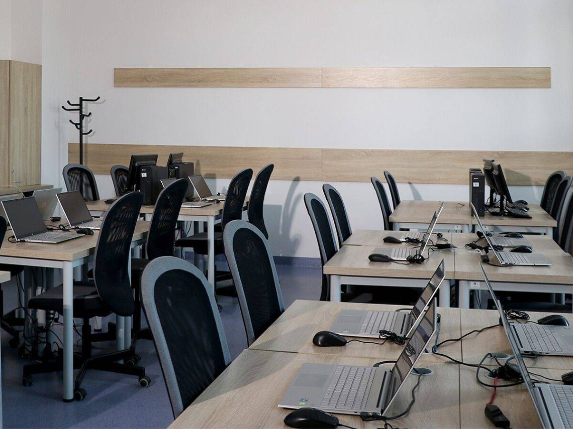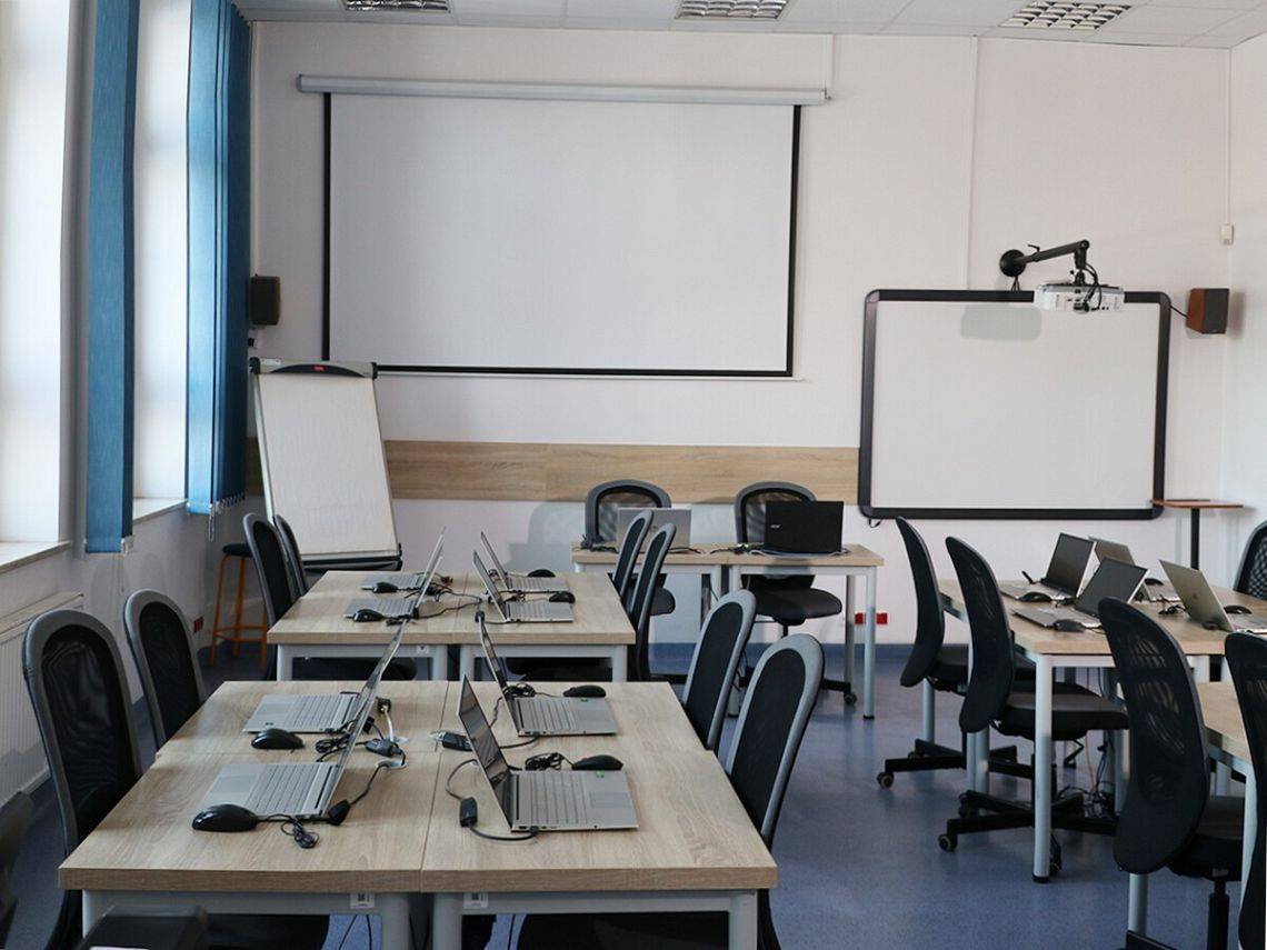 - sala komputerowa – min. 10 stanowisk – wyposażenie: sprzęt komputerowy, tablica interaktywna, rzutnik
