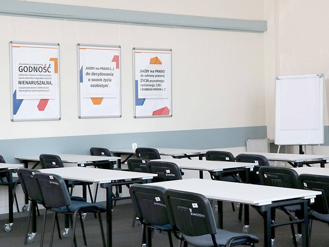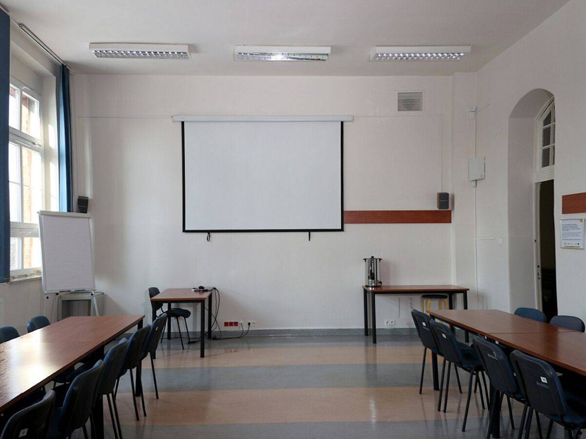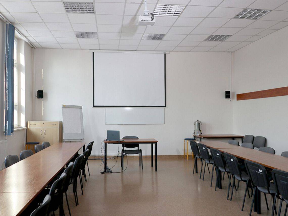 - sala wykładowa na 40 osób – wyposażenie: rzutnik, tablica flipchart