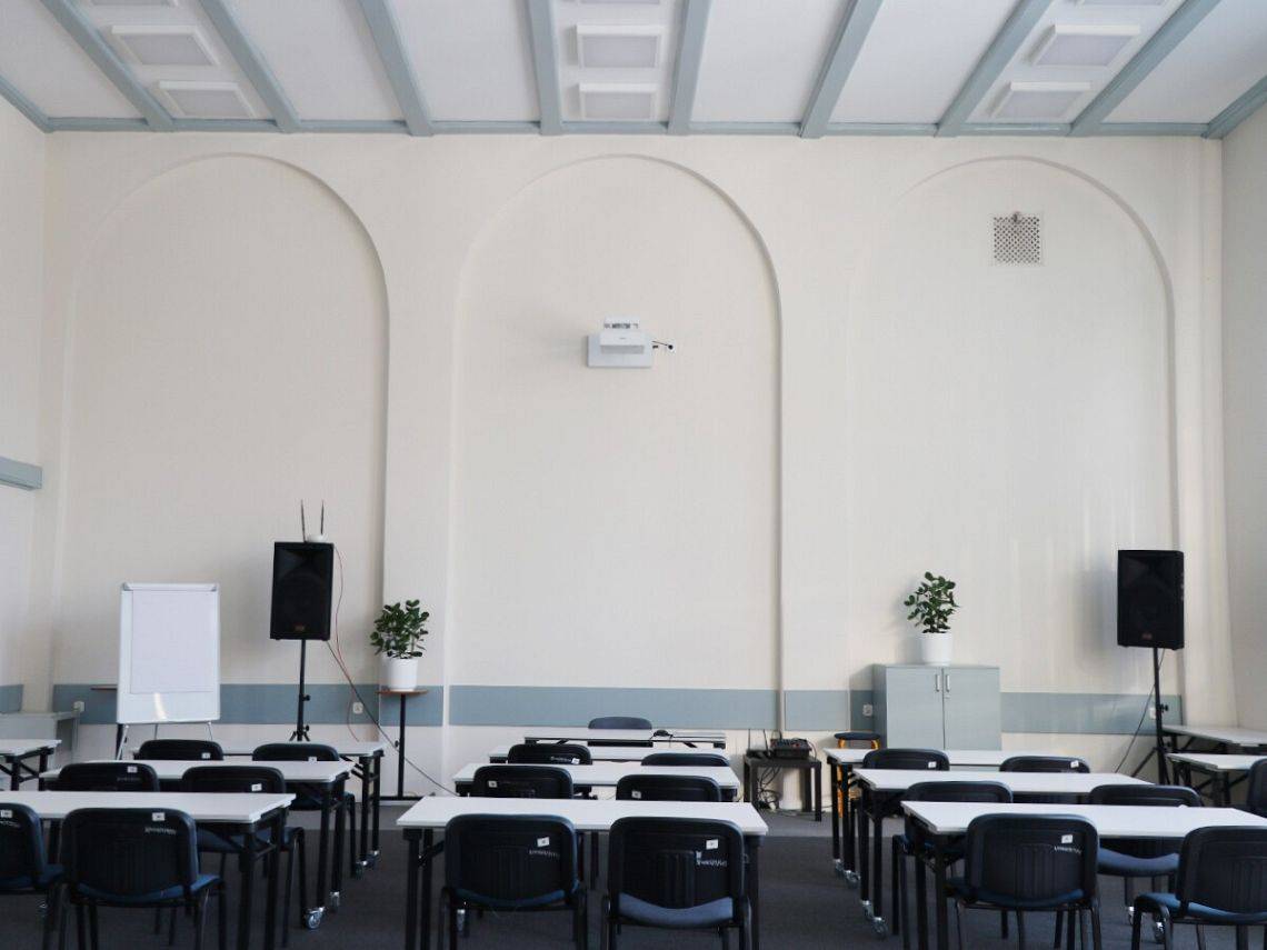 - dwie aule na 70-80 osób – wyposażenie: rzutnik, nagłośnienie, tablica flipchart